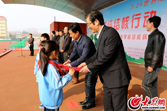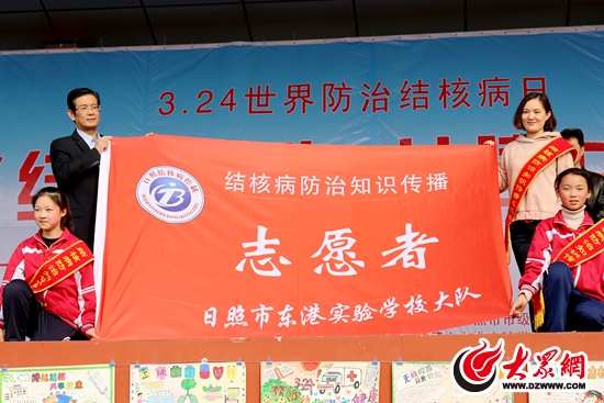 为贯彻落实《学校结核病防控工作规范(2017版)》,进一步加强学校结核病防控工作,积极构建无结核病和谐校园,维护正常的教学秩序和社会稳定。3月24日前夕,由日照市卫生和计划生育委员会、日照市市级公立医院管理局、日照市教育局主办,东港区卫计局、东港区教育局、东港实验学校、日照市防痨协会和日照市结核病防治所承办的“结防知识进校园”活动走进日照市东港实验学校。市卫计委副主任朱友亮、市医管局副局长王洪英、市教育局体卫艺科科长宋兆宪、东港区疾控中心主任邢良红、东港教育局主任科员吴奎波、市防痨协会理事长(市结防所所长)任守海、日照市东港实验学校校长滕兆敏、书记刘润汉出席活动,活动由市卫计委疾控科科长丁希毅主持。