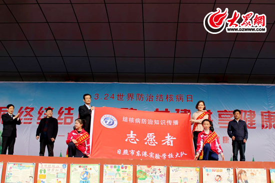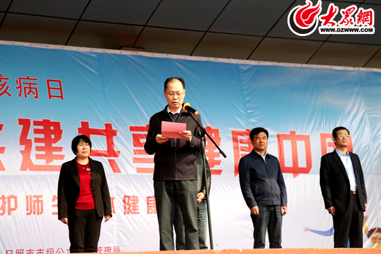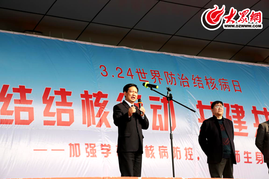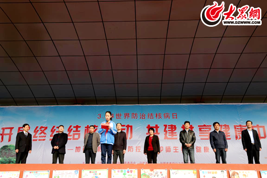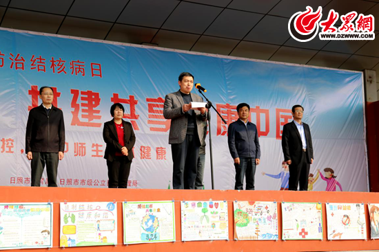 为贯彻落实《学校结核病防控工作规范(2017版)》,进一步加强学校结核病防控工作,积极构建无结核病和谐校园,维护正常的教学秩序和社会稳定。3月24日前夕,由日照市卫生和计划生育委员会、日照市市级公立医院管理局、日照市教育局主办,东港区卫计局、东港区教育局、东港实验学校、日照市防痨协会和日照市结核病防治所承办的“结防知识进校园”活动走进日照市东港实验学校。市卫计委副主任朱友亮、市医管局副局长王洪英、市教育局体卫艺科科长宋兆宪、东港区疾控中心主任邢良红、东港教育局主任科员吴奎波、市防痨协会理事长(市结防所所长)任守海、日照市东港实验学校校长滕兆敏、书记刘润汉出席活动,活动由市卫计委疾控科科长丁希毅主持。全市卫生计生行政部门、市级公立医院管理局、教育系统、结核病专业防治机构、各高校志愿者团队以及东港实验学校和日照市多家媒体的2800多名代表参加了本次活动。