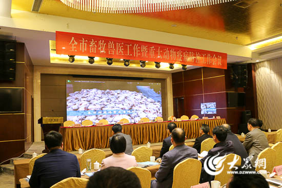 大众网日照3月25日讯(记者 马坤鹏)为全面贯彻落实国家和省2018年畜牧兽医工作会议精神,进一步加强我市重大动物疫病防控工作,保障畜牧业持续健康发展和公共卫生安全,3月23日,我市成功召开2018年全市畜牧兽医工作暨重大动物疫病防控工作会议,市畜牧兽医局局长孔凡德作了题为《发展绿色畜牧 助力乡村振兴》的工作报告,市政府办公室党组成员王磊出席会议并讲话。