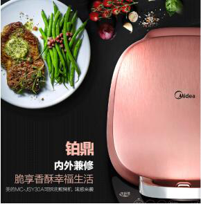 据了解,美的MC-JSY30A可拆洗煎烤机是一款拥有上下两个烤盘的煎烤机,可以完成煎、烤、炒、烙等多项烹饪程序。在这款美的煎烤机中,上下烤盘可180°自由开合,两个烤盘均可独立加热,自由控制烹饪温度。上烤盘为锁水圈烤盘,可滤除多余油脂,适合煎、烤肉类美食;而下烤盘则为晶钻匀热烤盘,受热均匀,适合烙、炒美食。上下烤盘可同时烹煮食物,大大提升了烹饪效率,满足更多人的饮食需求。出于卫生考虑,这款美的煎烤机还采用了烤盘可拆卸设计,上下烤盘均可轻松拆卸和安装,便于清洗,无需担心油腻难除或是清洗时水滴流入机器中造成漏电损坏。