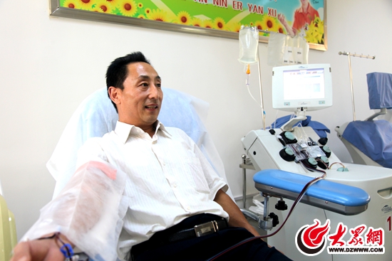 献血者名叫张立国,是山东省《大众日报》专题部主任,也是省无偿献血志愿服务队副队长。52岁的张立国看上去比实际年龄要年轻很多,当天下午,张立国是趁来日照公务之便,从火车站直接赶到市中心血站捐献单采血小板,“献血是健康人的举手之劳,我坚持定期献血不但有益身体健康,还能救助危重病人,挺有自豪感的,这是一件非常光荣的事情。”简单的几句话却道出了一位志愿献血者的心声,现场的工作人员无不为之动容。正是社会上越来越多的像张立国这样的无私奉献者们,为急需用血患者带去了一份感动、一份希望……。