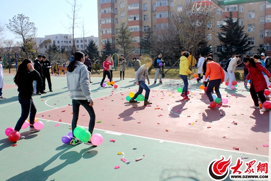 比赛设置三个项目:牵手接力、定点投篮、踩气球,共有80余人报名参赛。牵手接力由8名男女队员手牵手合作跑完50米赛道,选手们团结协作,互帮互助,赛道外加油声,呐喊声此起彼伏。定点投篮中男女各2名队员组成一个参赛队,比赛中女选手巾帼不让须眉,成为小组决定胜负的“关键先生”。踩气球活动中10人一组,每组决胜1人,在气球的“砰、砰”爆裂声中,将此次活动推向高潮。