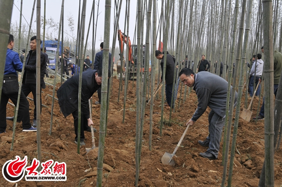 大众网日照3月13日讯 3月12日,市卫生计生委组织干部职工到五莲县户部乡邱家店子村义务植树。经过一个上午的努力,800余棵竹子栽植完毕,原本光秃秃的山石地变成一片茂盛而富有情调的竹海!