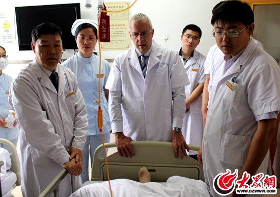 随后,史迪克教授跟随同事一起前往住院区,针对每个病人不同的病症制定合理的手术及恢复方案,一位病人告诉记者说:“早就听说过史迪克大夫的大名了,给咱日照的小老百姓看病都二十年了,这位‘洋’大夫医术可不含糊。”