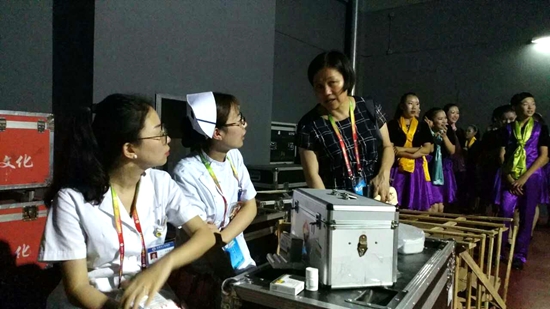 第八届中国少年儿童合唱节规格高、影响大、人数多、地点分散,医疗保障任务压力较大。为切实做好合唱节期间的医疗卫生保障和卫生监管工作,市卫生计生委于7月14日召开专题会议,对有关医疗保障工作进行部署协调。7月18日上午,10个医疗保障小组人员全部就位,进入保障状态。截至7月19日,医疗保障人员提供基础医疗服务40余人次,发放药品数量200余盒(片、瓶)。7月18日晚上10:58,入住君临天下大酒店的深圳合唱团由于长途奔波,部分小朋友出现感冒、咽痛症状,保障大夫及时诊治,发现感冒药物紧缺,市中医医院医务科及时调度,于当晚11:21分连夜将药品补充到位。