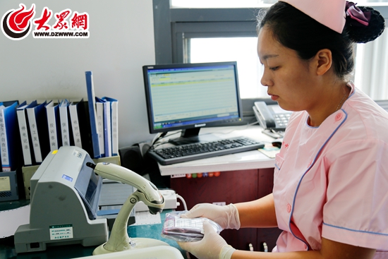 在护士站,“第五关”——护士要为血液再次进行检验核对,待所有工作结束后,血液才可以进入董先生的病房。