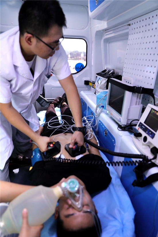 上午8点半,市人民医院医疗保障总指挥部、医疗站、医疗点及救护车按指定位置就位,指挥部分别确认各站点、救护车到位及准备情况。上午九点医疗保障演练正式开始,救护车根据指令调度参与救护,并现场模拟伤员救治流程。此次演练主要针对的是昏迷、心脏骤停、摔伤骨折、轻微中暑等常见意外突发状况进行了情景模拟,在演练过程中,突发情况十分紧急,医院救援指挥部总指挥丁兆军主席对医疗急救过程中各个环节严格把关,根据遇到的问题,适时调整完善救援方案,救治过程有条不紊,现场医护人员各司其职,救援程序层序分明,模拟伤员得到了及时有效的救治。