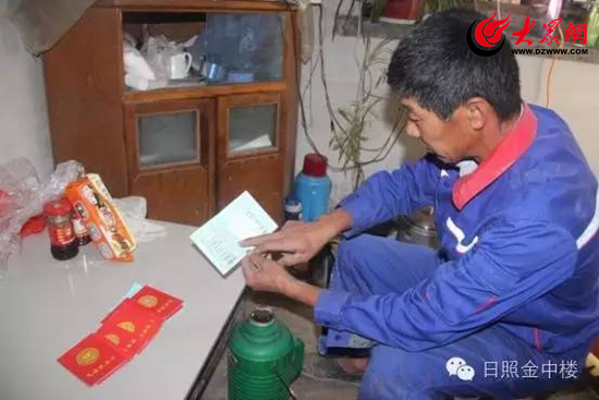 几天前,柳廷贤到镇政府办事,刚踏进办公室的门,他就被放置在东北角的一块“日照市无偿献血先进单位”的牌匾吸引住了,眼中满含的的深情,就像是见到了自己的“故交”一般亲切。他缘何对这块牌匾如此“钟情”?“这块牌子和我的那块牌子应该是在同一个大会上发的”柳廷贤竟给出了这样一个“令人意想不到”的答案。很难想象眼前这位衣着“寒酸”,面色黝黑,头发半白的贫困村民家也会有一块类似的牌子?