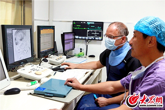 据了解,帕克教授在影像诊断及介入治疗方面有着很高的造诣,擅长脑血管病的综合影像诊断及脑血管病及肿瘤外周血管病的介入治疗。在短短五天的工作时间里,帕克教授先后在介入放射科、CT室、MR室、普放室进行了详细地工作和了解,重点围绕脑血管性疾病、神经系统肿瘤等神经内外科常见病和多发病的规范治疗及国际诊疗的最新进展进行了指导。来访期间,帕克教授参与指导介入手术10余台,还在医学影像科的不同部门,参与疑难病例讨论诊断及指导,与日照医务人员及患者进行了密切地交流。