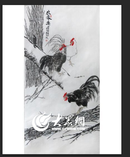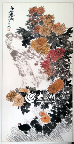 他喜画鸡,他笔下的鸡或高鸣,或闲聚,或迷醉,或静思,简单几笔,威武灵动,栩栩如生。他就是现就职于日照市新世纪商厦有限公司,从事策划工作的赵军波。