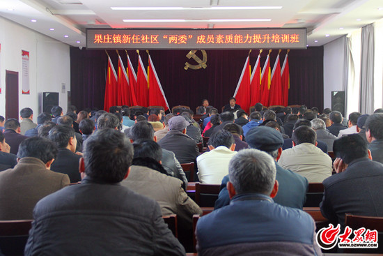 大众网日照3月12日讯(通讯员 周丽娜)3月12日上午,为进一步提高全体机关干部、社区“两委”成员的自身素质,更好地开展各项工作,果庄镇组织开展新任社区“两委”成员素质提升培训班,党政班子成员、副科级干部、全体机关干部、社区“两委”成员、村报账员参加培训。