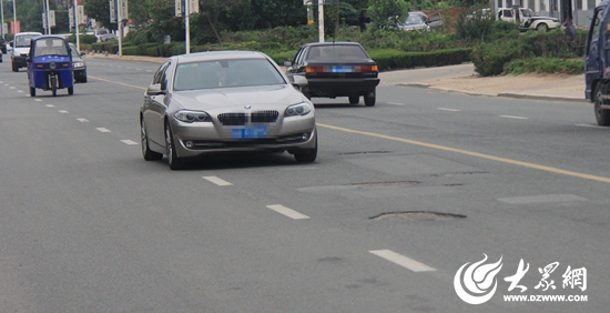 4日下午,记者从昭阳路从南向北行驶,发现昭阳路的路面较为平整,油柏路并没有让记者感到颠簸。但经过高新二路,路面就变得崎岖起来,路面坑洼现象明显,虽然密度不大,但是分布的范围较长,直径有长有短,大小不一,路面上汽车、电动车持续颠簸,行人忍受着车辆过往掀起的沙土。