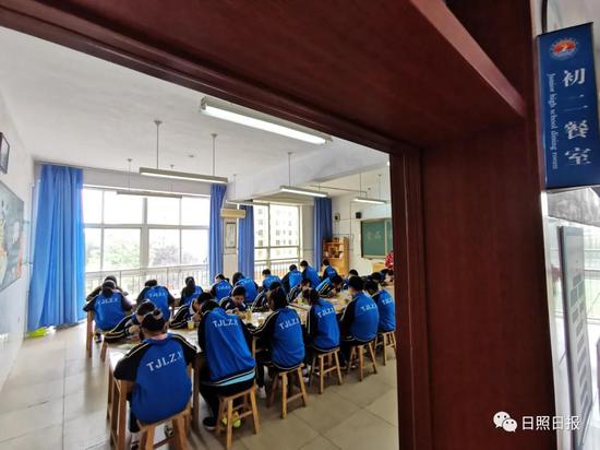 此外,该校吃集中配餐的学生不算多,为方便管理,学校将一到三楼空置的教室作为专门的就餐室。放学后,学生以年级为单位,到对应的就餐室吃饭。