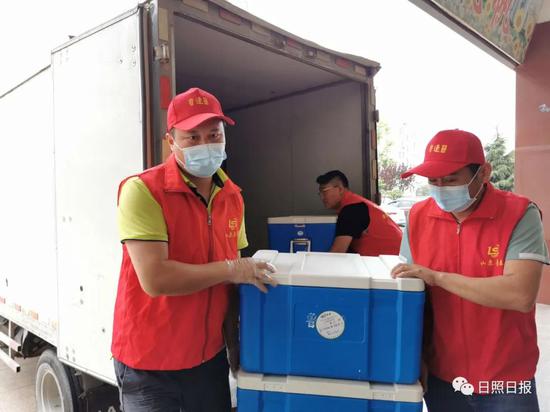 “温度达标,符合要求。”王伟元边说边继续跟送餐人员沟通,确定无误后,送餐人员开始有序卸运午餐。