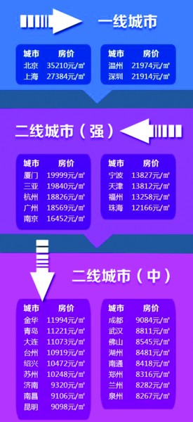 在这份榜单中,北京、上海、深圳和温州处于房价的第一线城市,青岛以11221元/平方米的均价居于“二线中城市”的第二名。这一均价比中国指数研究院9500元/平方米的数据要高,但更符合市区居民的实际感受。