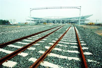 青岛北客站铺钢轨 今年10月试跑高铁(图)
