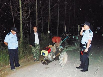 9月8日晚上9时许,大场派出所民警巡逻至吉利河村南田间小路时,远远看见有一人坐在地上,旁边停着一辆手扶拖拉机,民警立即下车向前查看情况。靠近后民警发现,蹲在地上的是一名四旬男子,只见他神情疲惫,一脸的茫然与不安。民警快步向前将其搀扶起来,“腿疼得厉害,我坐边上吧。”民警把他扶到路边的石头上坐下,然后询问男子是否需要帮助。“拖拉机坏了,我一个人推也推不动,周围又找不到人帮忙,我真不知道该怎么办了。 ”