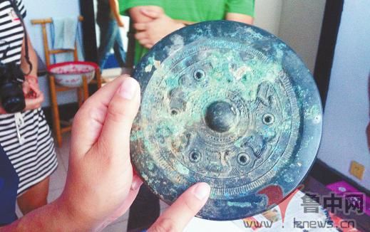 9月16日上午,周村区王村镇东铺村一个正在建设的大棚内,一辆挖掘机在挖地基时,突然挖出一面“圆盘”及一个小型墓地。这面“圆盘”被一名村民带回了家,后被派出所民警追回。经文物专家初步鉴定,这面“圆盘”为汉代铜镜,而古墓的主人身份目前难以判断。