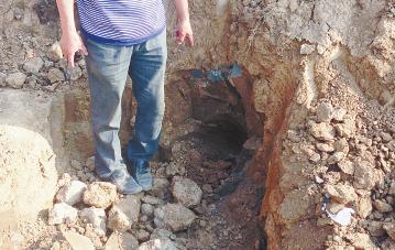在现场的四周,土里也能看出有些破碎的青砖,还有些已经断裂白色发黄的骨头,断裂的横截面颜色非常白。