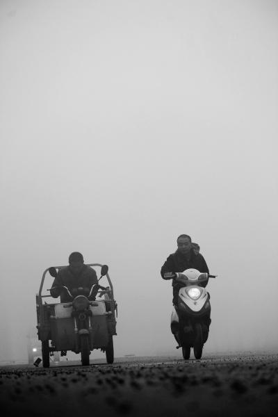 9月30日,河南省安阳市内黄县群众在雾霾中骑行供图/新华社