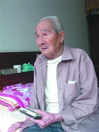 在合肥路街道福岭小区王清玉的家里,上午9点,101岁的他准时打开收音机听新闻。见有生人来访,老人抬起来原本低垂的眼帘,很认真地打量记者,“你是大夫?”儿媳妇王翠玲趴到老人的耳朵边大声介绍记者,老人显然没听明白,“老师?谁的老师? ”记者和王翠玲聊天的时候,老人一直饶有兴趣地侧耳听,按时笑笑、挥挥手参与。