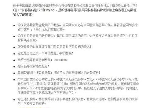 记者注意到,该推出该排名的“中国研究中心”除了本次的500大最佳小学的排名,同样曾经推出过2013年中国400家最佳餐厅、中国200大最大最高档酒店、中国260最佳高中等多个排名。
