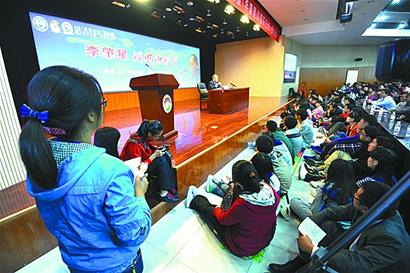 昨天上午8时许,离报告会开始还有一个小时,中国石油大学逸夫会议中心报告厅门口就已经挤满了大学生,大家早早到来为的是一睹这位外交家的风采。因为人太多座位不够,主办方临时只得提供坐垫,报告台下的空地和台阶上也坐满了人。