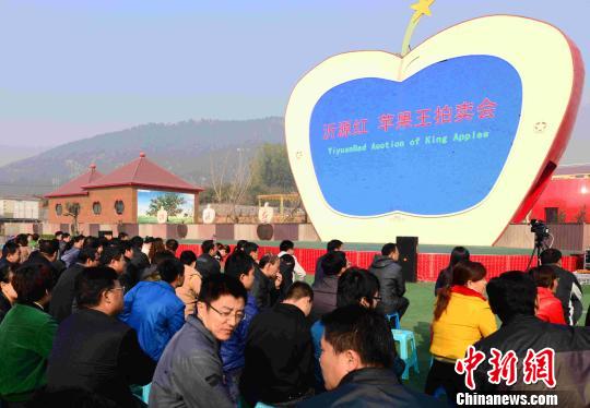 山东沂源27日举行第三届苹果文化节苹果王拍卖活动,当地2千多人参与竞拍。 李欣 摄