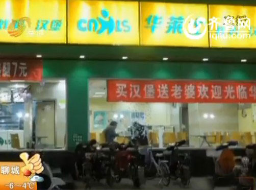 快餐店打出“买汉堡送老婆”广告语(视频截图)