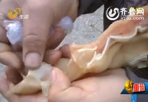 潍坊男子疑买到假猪耳朵 含胶状物吃起来香(图)