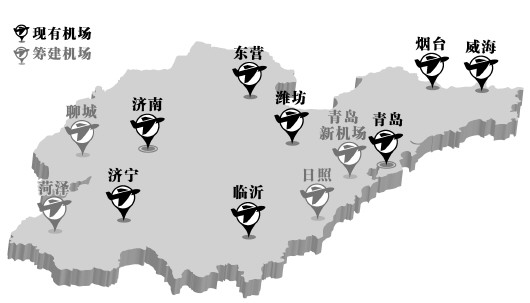 2011年9月颁布的《山东省人民政府关于加快民航业发展的意见》提出,到2015年,全省民用机场力争达到20个以上。其中,运输机场10个,通用机场10个以上。基地航空公司力争达到6家以上,投入飞机总数160架左右,旅客吞吐量达到4500万人次,较2010年翻番。