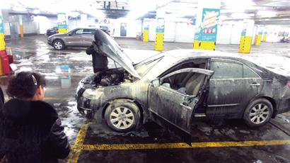 凯美瑞停商场车库10分钟 发动机盖冒一米火苗