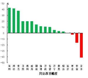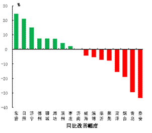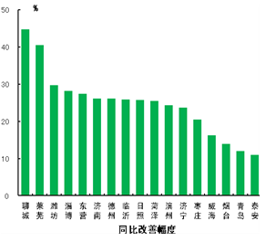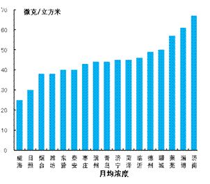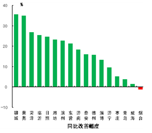 2月份,可吸入颗粒物浓度最好的城市是威海,为69μg/m3,最差的城市是济南,为187μg/m3;同比改善幅度最大的城市是聊城,为35.6%,恶化幅度最大的城市是烟台,为-1.2%。