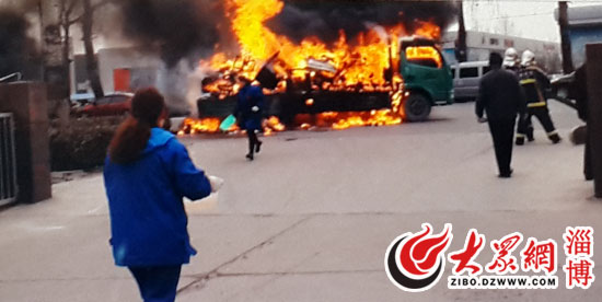今天下午16时许,大众网记者接到网友热线电话称,在位于昌国立交桥南侧一千米处,山泉路由南向北行驶的道路上,一辆小货 车突发火灾,距离加油站仅10多米远,情况十分危急。