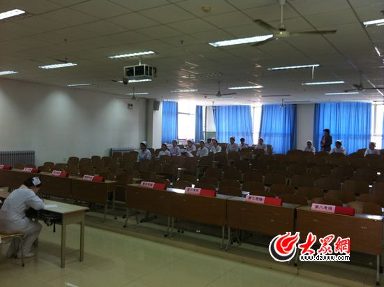 “考生按照着装规范进入考场,报到后上交手机等与考试无关的物品,领取考号,然后在一间教室内候考,考试结束后直接离开考场,不能在考场附近逗留。”学校工作人员介绍说,学校从山东省立医院、齐鲁医院、省千佛山医院等单位选聘了考评专家,考评员每半天轮换一次考场,手机统一管理,最大程度上保证了考试的公开公正。