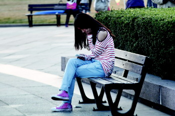 16日,天气较暖,五四广场上一名女子穿着单薄的春装。本报记者 杨广帅 摄