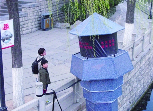 昨日,在省城护城河白石桥下,一个约5米高的水文监测站亮相。据了解,水文监测站主要监测当前泉水的流量与流速。记者郑涛摄影报道