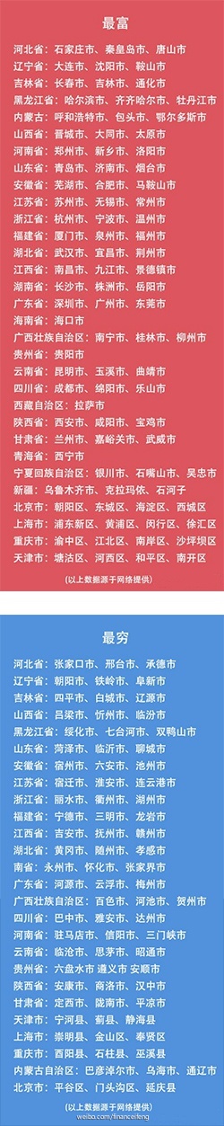 网传的一份《中国各省市最富和最穷的三个市》榜单