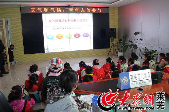 莱芜气象局对外开放日,莱芜小学生观看天气预报制作宣传片(记者 亓秀宝 摄)