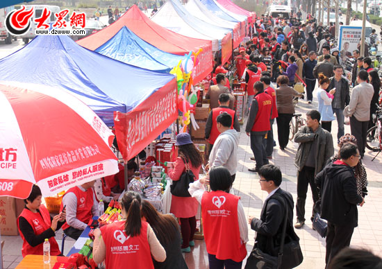 23日上午,来自德州市各县市区的24家爱心企业,纷纷摆出自家产品,产品涉及食品、纺织品、酒水、日用品等,以优惠爱心价进行义卖,所得善款现场全部放入慈善总会捐款箱,事后将全部用于救助家住德州市堤岭村的23岁白血病患者郑庆欣。