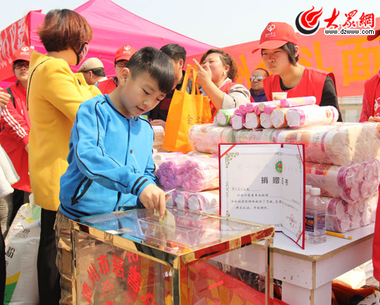 德州金斗面粉有限公司运来了1万元的紫薯面条,山东鑫秋家纺有限公司提供3万元床上用品,东旭粮油调味品有限公司提供了100箱杂粮,九星商贸公司送来1万元白酒,鲁丰公司运来50箱“爱心菜”……好心市民们也纷纷伸出援手,100元、200元,一张张的善款汇聚到捐款箱中,将捐助现场气氛推向高潮。