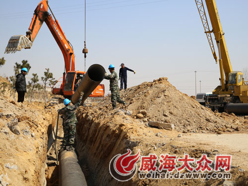 乳山银滩供水主管道建设进行中 4月中旬完工
