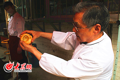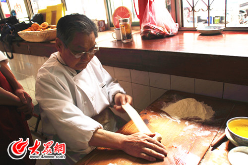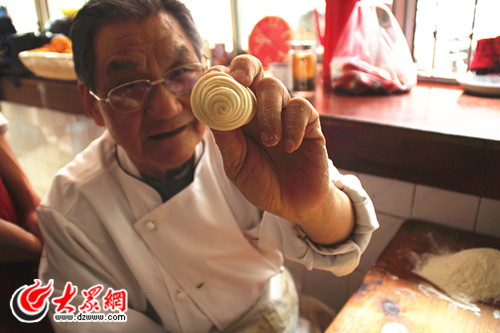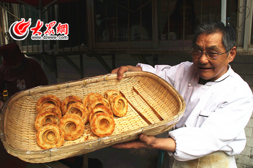 制作油旋的这位老人就是苏将林,他也是济南唯一得到油旋制作手艺真传的人,今年整80岁高龄。师从油旋好手耿长银的他,做的油旋手艺正宗、味道地道。说起油旋,老人有说不完的话。