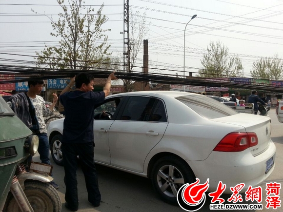 在记者采访过程中发现,凡市民开车进出生建机械厂,都不得不让人帮助扛起电线,才能通过此处。