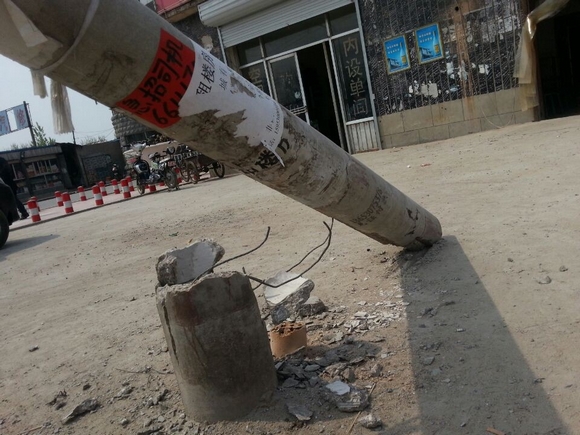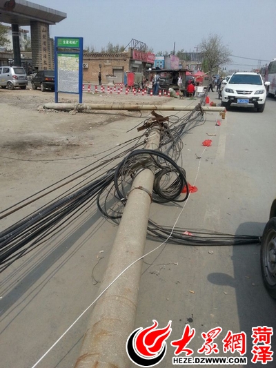 菏泽:货车撞倒通讯线杆 15小时无人维修