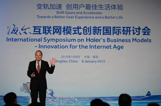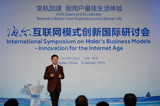 2015年1月8日上午9时,“海尔互联网模式创新国际研讨会”在海尔洲际酒店海洋厅正式召开。本次研讨会以“变轨加速创用户最佳生活体验”为主题,旨在探讨海尔在互联网时代的商业模式创新,并寻求中国企业应对互联网时代挑战的道路。