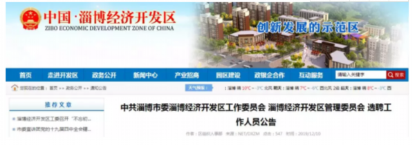 12月10日,淄博经济开发区官网发布了中共淄博市委淄博经济开发区工作委员会、淄博经济开发区管理委员会的选聘工作人员公告: